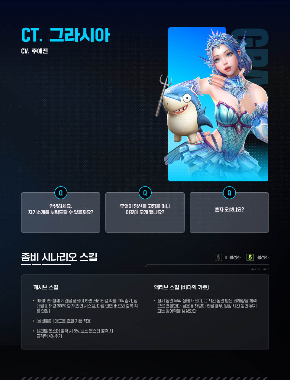 이지스 연구소의 방해를 피해 먼 남쪽 심해로 내려간 그녀는 해양 생물들의 유전자를 추출하여 인간 세포와 융합을 시도했다.