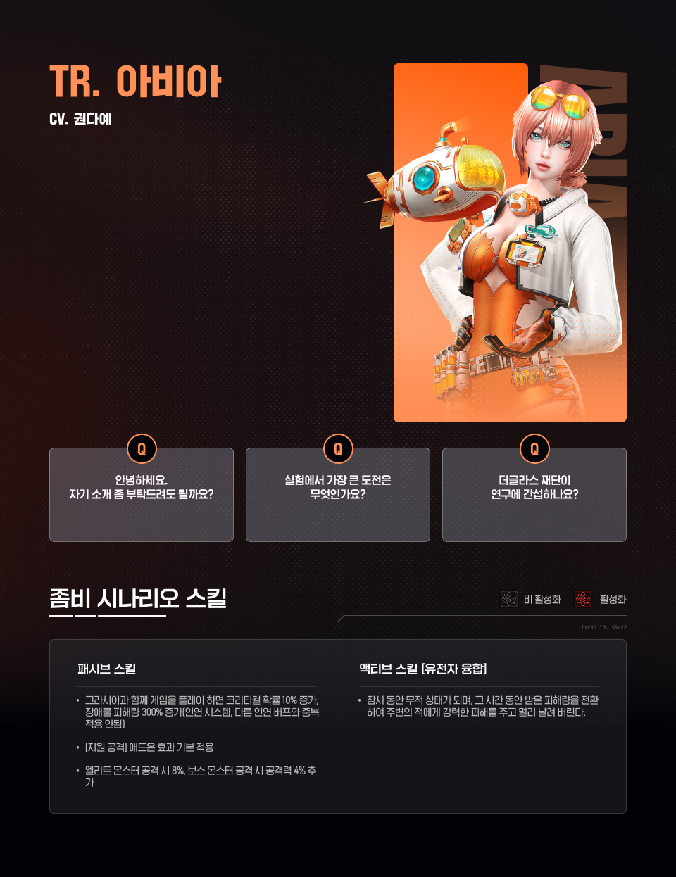 제안한다. 아비아는 흔쾌히 크로노스 사와 계약을 맺고, 자신의 실험을 즉시 진행했다.