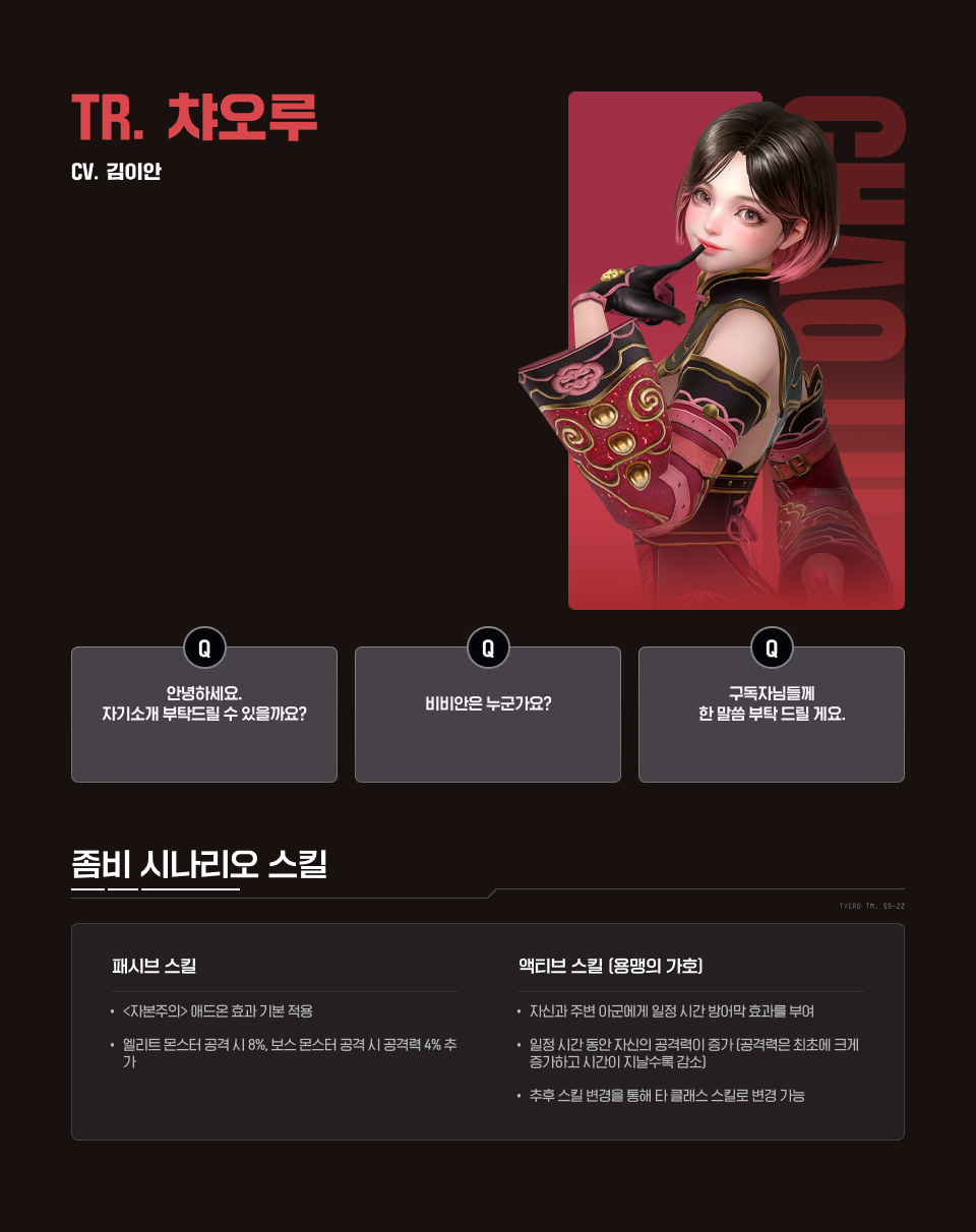 레디 액션 큐! 그녀는 언제든 자신이 지켜야 하는 비비안을 위해 뭐든지 할 준비가 되어있다. 그녀 덕분에 안정적인 직장을 얻을 수 있었고 추후 군수회사의 광고모델까지 시켜준다고 했으니 굴러